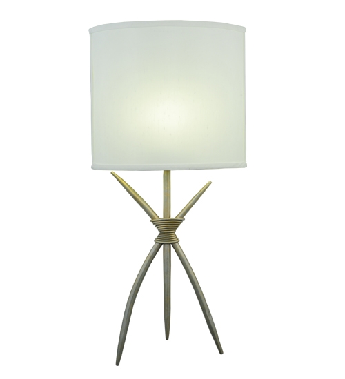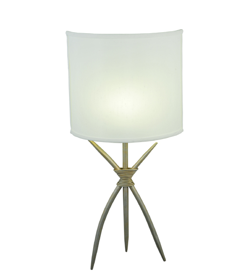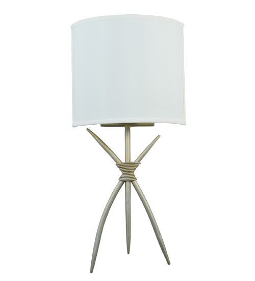 This unique wall sconce integrates an Art Deco design with an intriguing Industrial Look. An elegant Eggshell Textrene shade features a Hand-Forged Iron coil-wrapped, three-legged frame in a Champagne Silver Metallic finish. This stunning ADA-compliant wall fixture is perfect for placement in entryways and other areas in residential and hospitality settings from Newport, Rhode Island, to Boca Raton, Florida. The Sabre Wall Sconce is included in our American-made, American-designed, handcrafted Art Deco Lighting Collection. The fixture is UL and cUL listed for dry and damp locations.