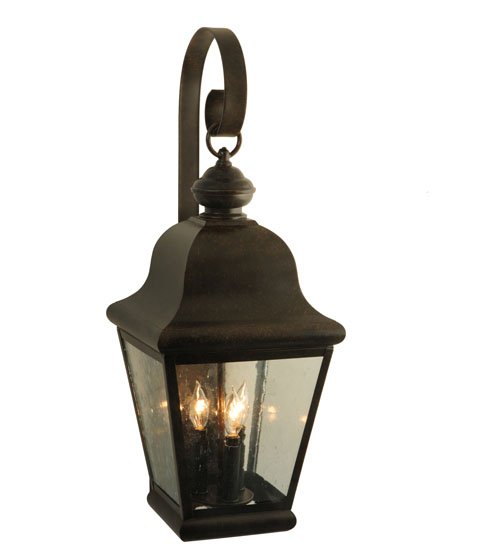 Enjoy the rich time-honored look of Lapalma, an updated lantern design revealing classic styling and handcrafted construction. The shapely lantern features Clear Seeded glass, which is complemented with a frame, scroll arm and accents, and hardware featured in a Coffee Bean finish. The sconce illuminates with 3 customer supplied faux candlelights and is available in custom colors, designs, sizes and dimmable energy efficient lamping options such as LED. The fixture is UL and cUL listed for wet and dry locations.