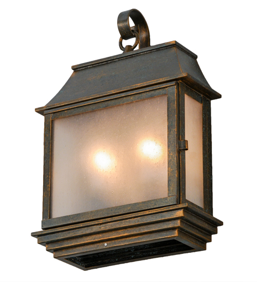 A brilliant incarnation of a stylized lantern used to illuminate old world fortress paths and streets in historic Paris. The chimney styled header and step design are featured in a Golden Bronze finish for a rich look. The Clear Seeded Glass lens opens from the front for easy lamp replacement (bulbs are supplied by the customer). This wall sconce is constructed of Solid Brass and ADA Compliant. Handcrafted by highly skilled artisans in our 180,000 square foot manufacturing facility in Yorkville, New York. Candlelight colors, metal finishes and fixture sizes can be customized to your needs. UL and cUL listed for dry and damp locations.