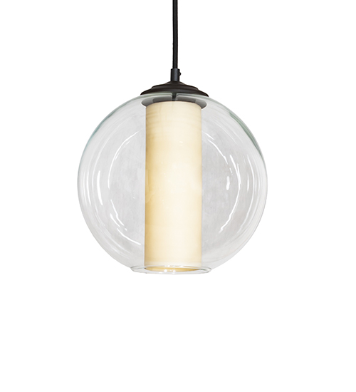 A cool contemporary look. A Clear Glass orb reveals a stylish Provostone Idalight cylinder in a chic pendant. The design is enhanced with hardware highlighted in an Oil Rubbed Bronze finish. Ideal for various rooms in residential, hospitality, and commercial environments, from Chattanooga, Tennessee, to Jackson, Mississippi, to Oceanside, California. The Bola Cilindro Pendant is included in our American-made, American-designed, handcrafted Modern Lighting Collection. The fixture is UL & cUL listed for dry and damp locations.