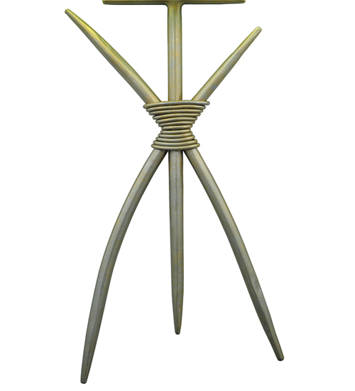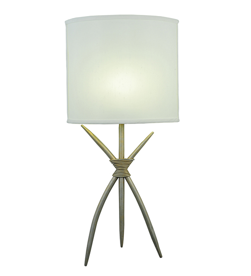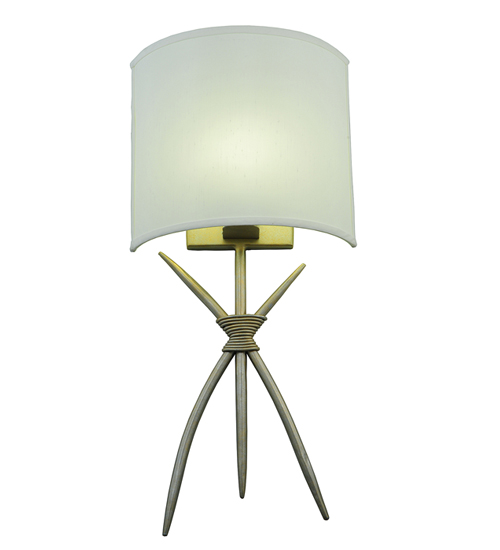 This unique wall sconce integrates an Art Deco design with an intriguing Industrial Look. An elegant Eggshell Textrene shade features a Hand-Forged Iron coil-wrapped, three-pronged frame in a Champagne Silver Metallic finish. This stunning ADA-compliant wall fixture is perfect for placement in entryways and other areas in residential and hospitality settings from Newport, Rhode Island, to Boca Raton, Florida. The Sabre Wall Sconce is included in our American-made, American-designed, handcrafted Art Deco Lighting Collection. The fixture is UL and cUL listed for dry and damp locations.
