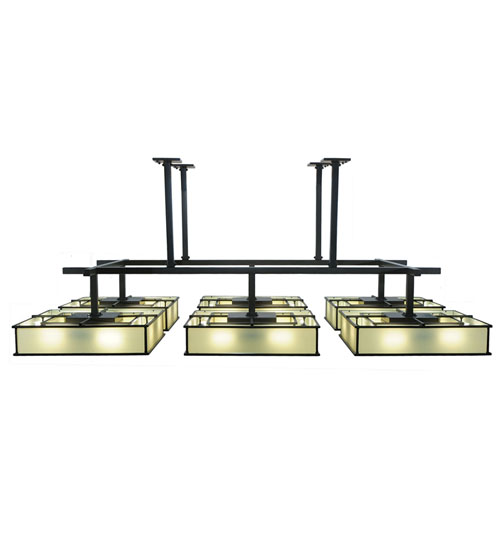 Offering a stunning architectural look, this Grand styled, geometric lighting design features six sets of Provostone Idalight diffusers which are complemented with Timeless Bronze finished decorative accents and hardware. The 103-inch long fixture is perfect for lighting large spaces in residential, hospitality and commercial settings. The fixture is handcrafted by highly skilled artisans in our Upstate NY manufacturing facility. The Piazza is available in custom sizes, styles, colors and lamping options such as LED. UL and cUL listed for dry and damp locations.