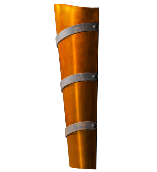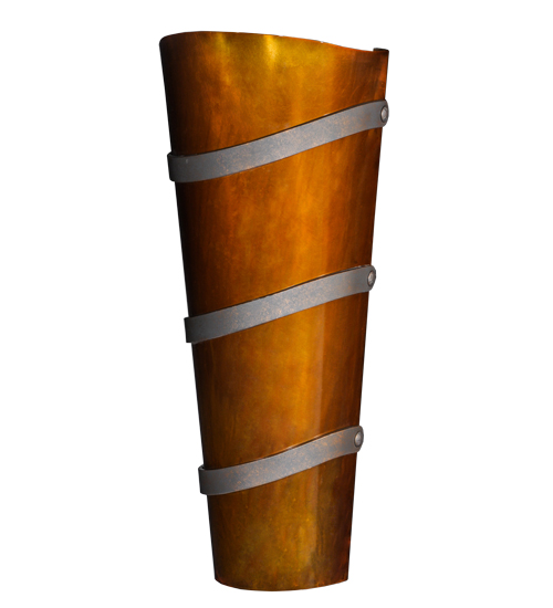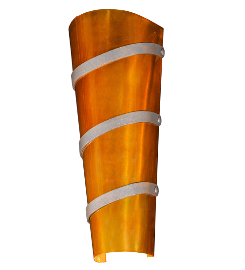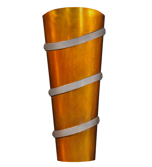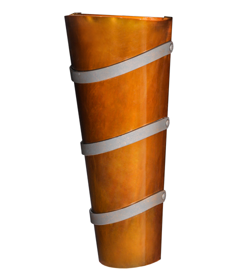 A dramatic decorative look for illuminating walls in residential, hospitality and commercial settings. Agathea features a transitional wall sconce design featuring an Old Copper Pot finished profile with Steel finished Spiral Bands. Handcrafted by highly skilled artisans in our manufacturing facility in the USA. Custom designs, finishes and sizes are available, as well as dimmable energy efficient lamping options such as LED. The conical shaped wall luminaire, which is 10 inches wide and 24 inches tall, is UL and cUL listed for dry and damp locations.