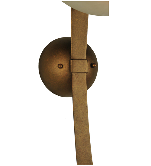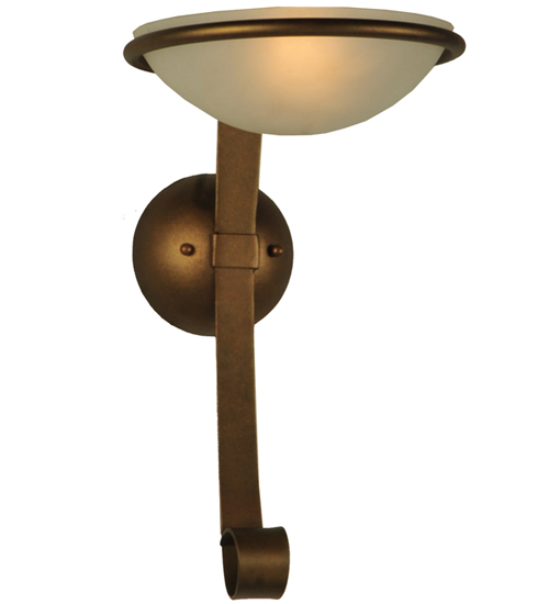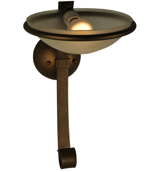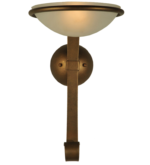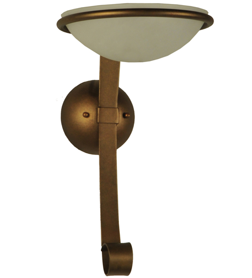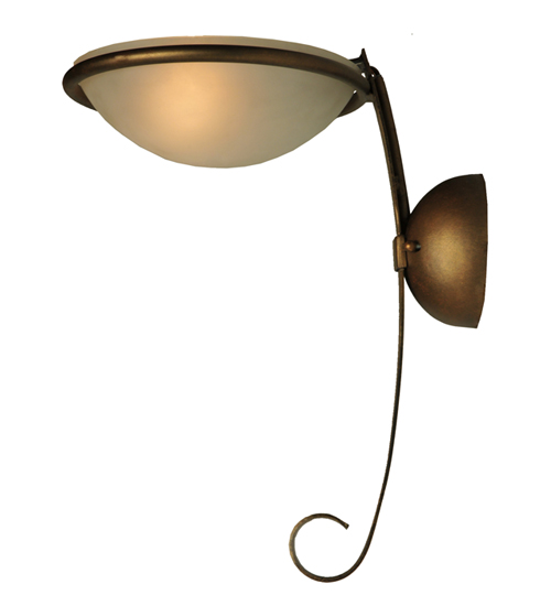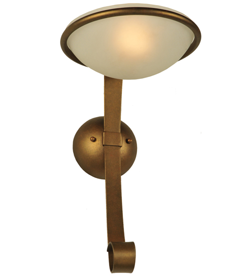The exquisite Calice Wall Sconce features a Contrail Mist Idalight diffuser which is embraced by a ring with a curved arm and scroll accent attached to the round backplate. The hardware and frame are featured in Copper with Bronze finish. Handcrafted in the USA, this fixture is available in custom designs, colors and sizes, as well as dimmable energy efficient lamping. The wall fixture, which is nearly 10 inches wide, is UL and cUL listed for dry and damp locations.