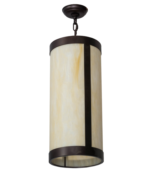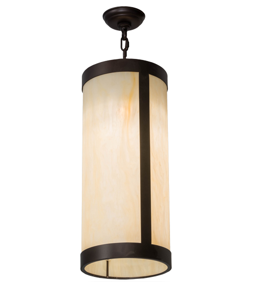 The stunning Cartier pendant pairs a Sahara Taupe Idalight shade with a frame and hardware which are featured in a Mahogany Bronze finish. Custom crafted by highly skilled artisans in our 180,000 square foot manufacturing facility in Yorkville, New York. Custom options include special sizes, styles and finishes, as well as dimmable energy efficient lamping options such as LED. The cylindrical shaped pendant is UL and cUL listed for dry and damp locations.
