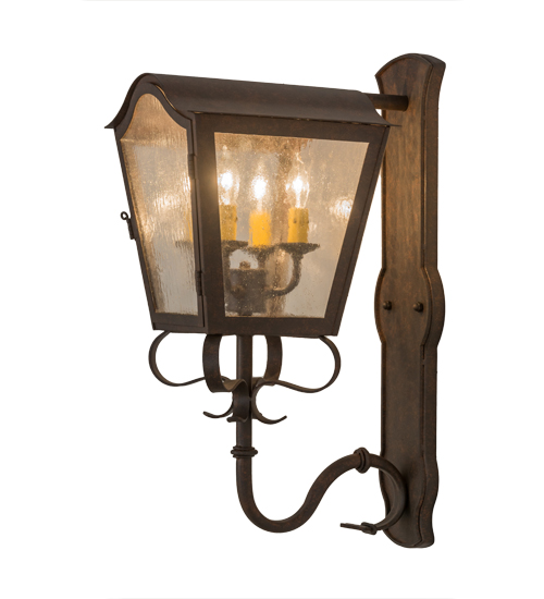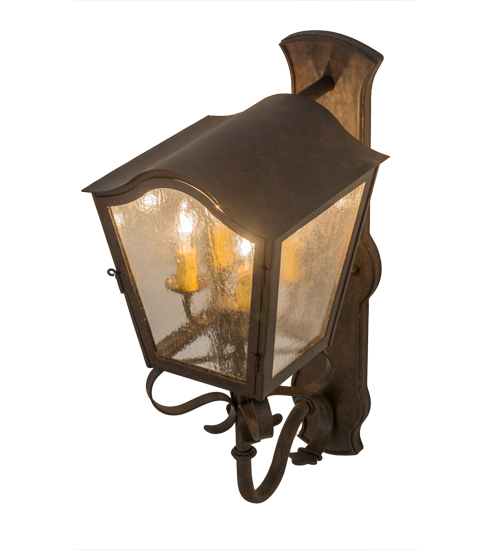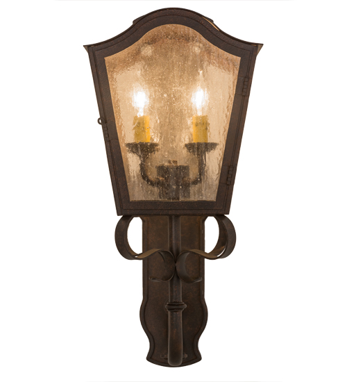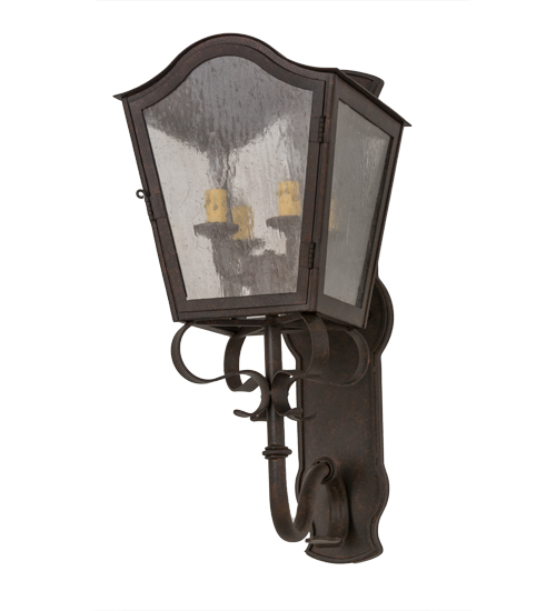 A strikingly handsome and distinctive design captures the distinctive qualities of this lantern and the stunning luster of appealing metal hardware. Clear Seeded glass projects ambient light through this lantern, which is complemented with a curved frame, scrolled accents and hardware featured in a Cajun Spice Textured finish. Custom options, including special sizes, styles, finishes and dimmable energy efficient lamping, are available. The sconce, which is handcrafted in the USA, is UL and cUL listed.