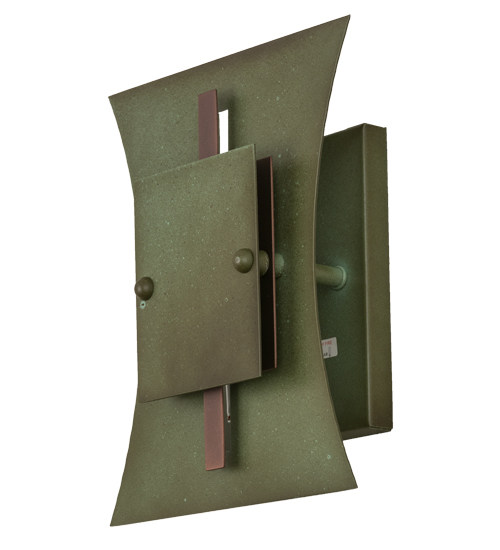 This cool, contemporary, retro-looking wall sconce in the Urban Collection is crafted and designed by the Team of artisans. Featuring a curved cylindrical shape,the luminaire is hand finished in Tarnished Copper and Cinnamon Metallic, and accented with decorative rivets.