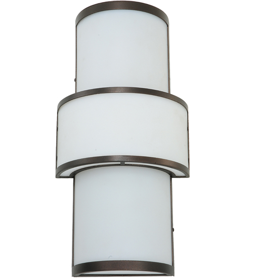 A luxurious multi dimensional design reveals the elegant, distinguished architectural look of this wall fixture. Clean sophistication astounds with round surfaces and straight lines to enhance a room while providing an effective source of light. The fixture features a cylindrical diffuser wrapped with a decorative element, both featured in Statuario Idalight. The luminaire is enhanced with Mahogany Bronze finished accents and hardware and is perfect illumination for corridors and other rooms. Handcrafted by highly skilled artisans in the USA. Options include energy efficient lamping options, as well as custom sizes, styles and colors. This sconce is UL and cUL listed for damp and dry locations.