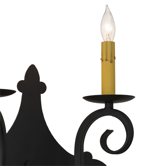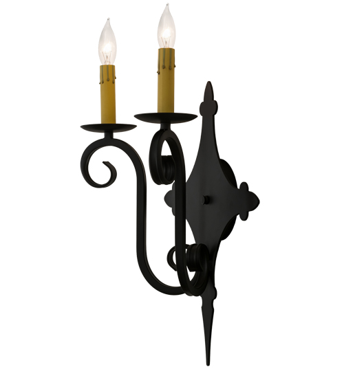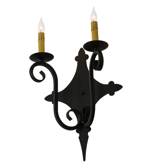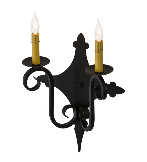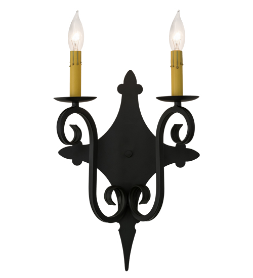 Rich charm and elegance come to light with Angelique, a wall sconce designed as a dramatic accent for a hallway, entryway or any other room. This enchanting wall fixture features two faux Ivory candlelights perched on bobeches with hardware featured in a Blackwash finish. Handcrafted by highly skilled artisans in our 180,000 square foot manufacturing facility in Yorkville, New York, this fixture is available in custom sizes, styles, colors and dimmable energy efficient lamping options such as LED. The wall fixture is UL and cUL listed for damp and dry locations.