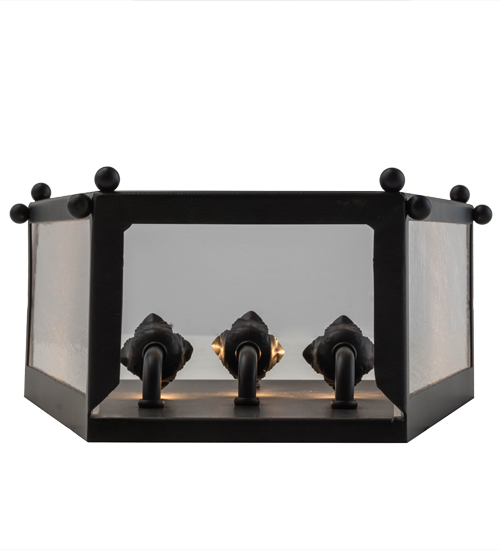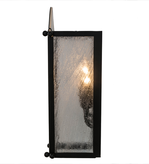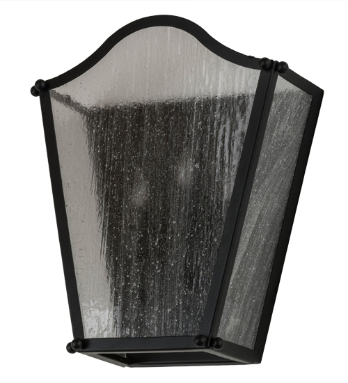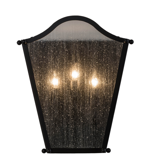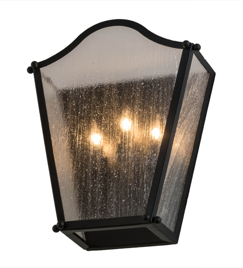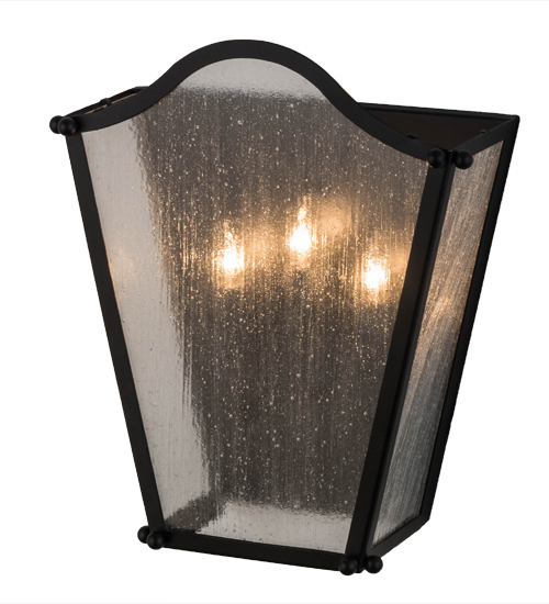 A lovely curvaceous lantern wall sconce. Austin features Clear Seeded Glass that reveals three faux candlelights. The graceful frame and hardware are offered in a stunning Blackwash finish. Handcrafted by highly skilled artisans in our 180,000 square foot manufacturing facility in Yorkville, New York. This wall sconce is available in custom shapes, designs, colors and sizes. UL and cUL listed for dry and damp locations.