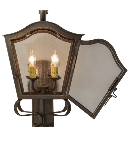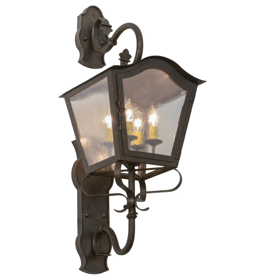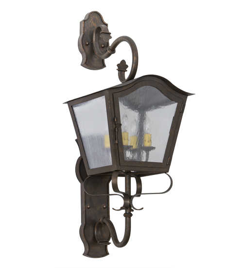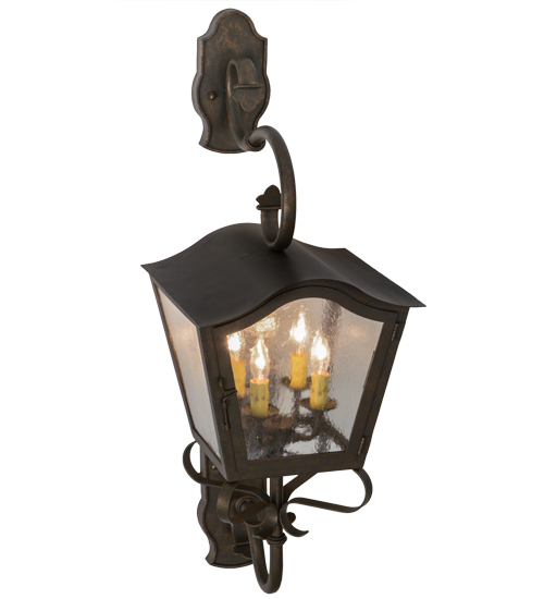 A strikingly exquisite and luxurious design. Christian captures a distinctive lantern aesthetic. Beautiful ambient light is projected through a Clear Seeded Glass lens in this wall sconce. The luminaire is complemented with a handsome Gilded Tobacco finish. Ideal for interior and exterior lighting applications in residential, hospitality and commercial settings. Handcrafted of Iron and Steel by master artisans in our 180,000 square foot manufacturing facility in Yorkville, New York. Shade colors, metal finishes and sizes can be customized to meet your needs. UL and cUL listed for dry, damp and wet locations.