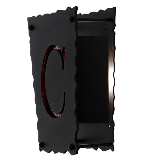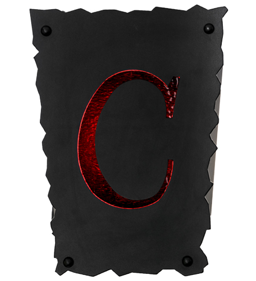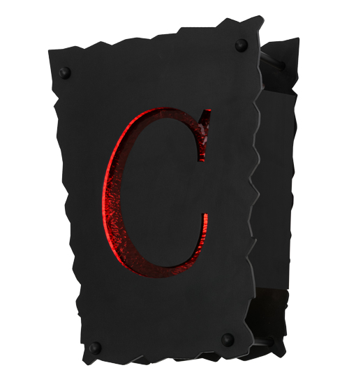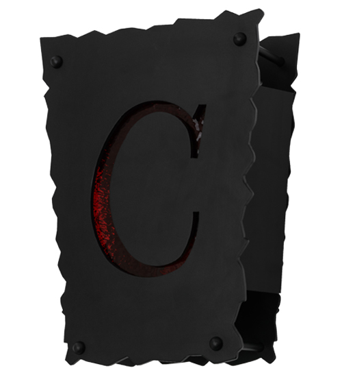 This personalized wall fixture features a Textured Black finished frame with an intriguing, edgy design. The sconce offers a stunning style with the C Monogram that highlights through a Cathedral Red Art Glass diffuser. The Personalized C Wall Sconce is featured in our Personalized Collection and is manufactured in Yorkville, New York. The fixture is UL and cUL listed for dry and damp locations. This specific wall sconce can be ordered, or we can coordinate a custom logo or monogram to suit your project. Please call for the price and lead time.