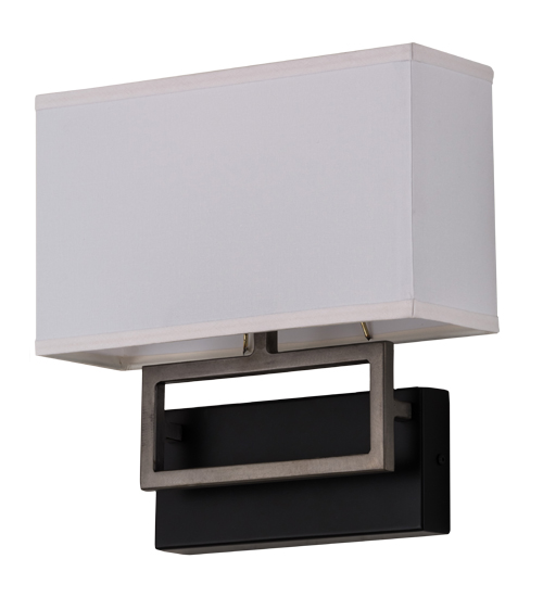 Invite a clean, architectural style to a modern home or hospitality setting. This elegant rectangular White Textrene shade is embraced by an Industrial Steel geometric silhouette and sleek Flat Black backplate that mounts directly to the wall. A beautiful layer of light brings relaxation and comfort to your space. The Westin Wall Sconce is included in our American-made, American-designed, handmade Modern Lighting Collection. UL and cUL listed for dry and damp locations; however, we do not recommend installing it in spaces that experience a large amount of moisture due to the fabric shade.