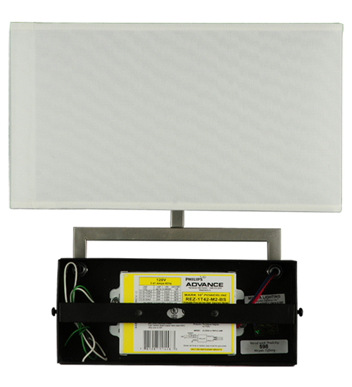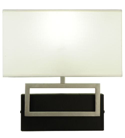 Invite a clean, architectural luminous style to a modern home or hospitality setting. This elegant rectangular White Textrene shade is embraced by a Brushed Stainless Steel geometric metal silhouette and sleek Matte Black backplate that mounts directly to the wall. A gorgeous layer of light brings relaxation and comfort to your space. The Westin Wall Sconce is ADA Compliant and included in our American-made, American-designed, handmade Modern Lighting Collection. UL and cUL listed for dry and damp locations; however, we do not recommend installing it in spaces that experience a large amount of moisture due to the fabric shade. The sconce is featured in The Westin Governor Morris Hotel in Morristown, NJ.
