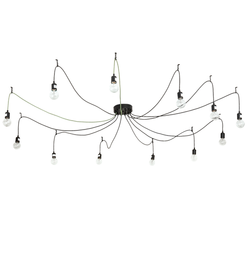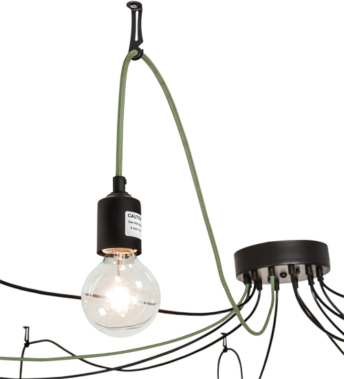 Designed like a festive garland of party lights for a special occasion or ambience in a residence, lounge or restaurant. Castiliolite features twelve Edison lamps draped with Black and Green colored cords from the ceiling. The pendant is complemented with a Solar Black finish. The overall height ranges from 12 to 70 inches as the cord lengths can be easily adjusted in the field to accommodate your specific lighting application needs. Custom crafted by highly skilled artisans in our 180,000 square foot manufacturing facility in Yorkville, New York. Lamping styles, metal finishes and fixture sizes can be customized to your needs. UL and cUL listed for dry and damp locations.