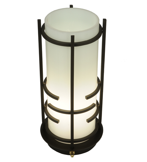 This alluring tabletop lantern features a unique motif reminiscent of the high art of the Art Deco era. This Revival Deco fixture is designed with a White Glass diffuser and enhanced with an Oil Rubbed Bronze finish. Handcrafted by highly skilled artisans in our 180,000 square foot manufacturing facility in Yorkville, New York. Lens colors, metal finishes and fixture sizes can be customized to your needs. UL and cUL listed for dry locations.
