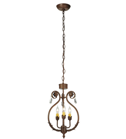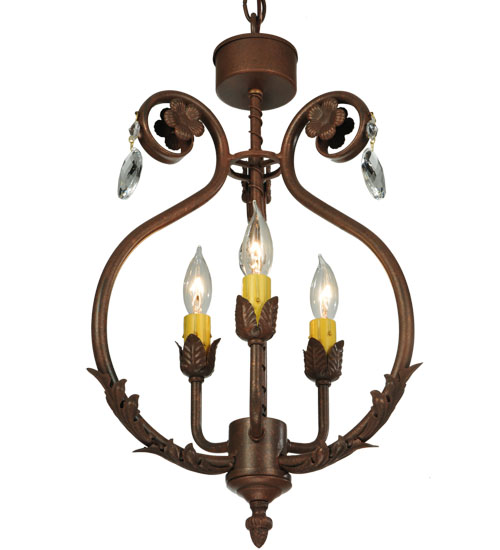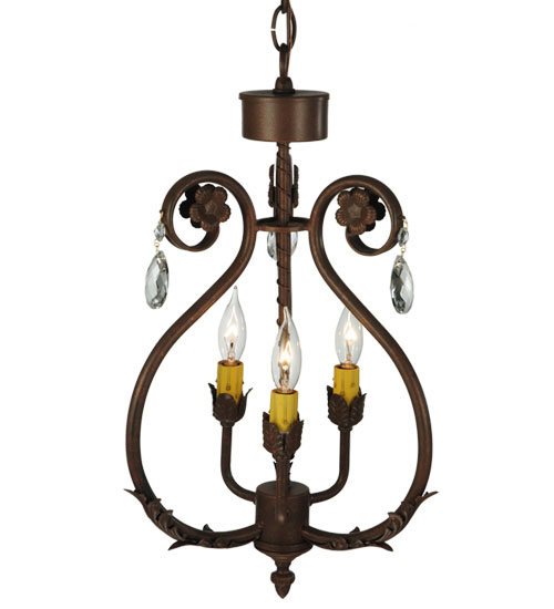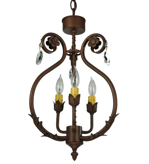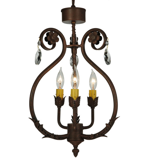 Exquisite styling and luxurious charm are reflected in this 3-light Antonia chandelier. This fixture combines faceted crystal charms, curvaceous scroll arms, floral accents and an Antique Rust finished hardware. This elegant chandelier embraces 3 faux candlelight. This chandelier features quality materials and hand detailed American craftsmanship perfected by years of time honored artistry, passed down from generations of highly skilled artisans. Custom sizes, styles, colors and dimmable energy efficient lamping options such as LED are available. The fixture is UL and cUL listed for damp and dry locations.