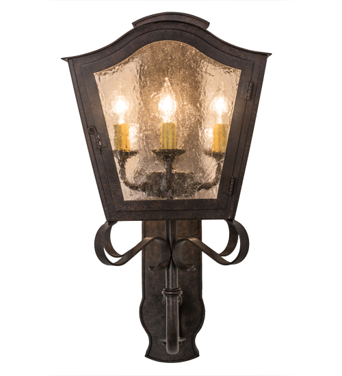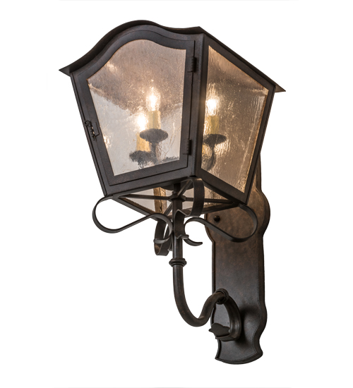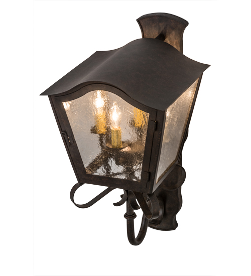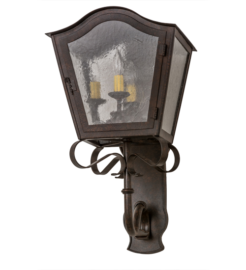 A strikingly exquisite and luxurious design. Christian captures a distinctive aesthetic with stunning luster and lantern style. Beautiful ambient light is projected through a Clear Seeded Glass lens in this wall sconce. The fixture is complemented with a Cajun Spice finish. Ideal for interior and exterior lighting applications in residential, hospitality and commercial settings. Handcrafted of Steel and Iron by master artisans in our 180,000 square foot manufacturing facility in Yorkville, New York. Shade colors, metal finishes and sizes can be customized to meet your needs. UL and cUL listed for dry, damp and wet locations.