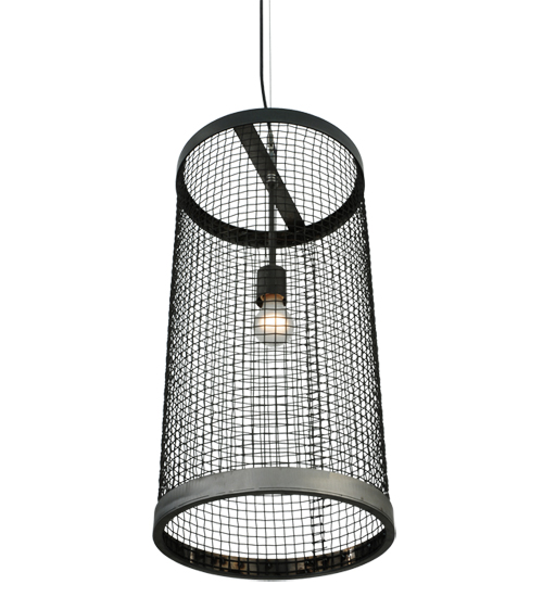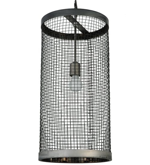 Designed with a cylindrical profile and a unique industrial look, this ceiling pendant features a distinctive aesthetic. The Weave-Tex Cage shade reveals a customer-supplied Edison lamp and is enhanced with a rugged frame and hardware featured in a Clear Matte Finish over Natural Steel. Handcrafted in the USA, this fixture is available in custom colors, styles and sizes, as well as dimmable energy efficient lamping options such as LED. The pendant is UL and cUL listed for damp and dry locations.