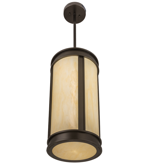 Designed with a cylindrical profile and sturdy architectural styled hardware, this appealing and versatile ceiling fixture reveals a sophisticated aesthetic. The pendant features a Sahara Taupe Idalight diffuser which is complemented with a frame and hardware featured in an Oil Rubbed Bronze finish and perfect for both interior and exterior lighting applications. Handcrafted by highly skilled artisans in our manufacturing facility in Upstate New York, this transitional styled pendant is available in a wide range of custom choices including various designs, colors, sizes and dimmable energy efficient lamping options such as LED. Cilindro Volusia is UL and cUL listed for dry and damp locations.