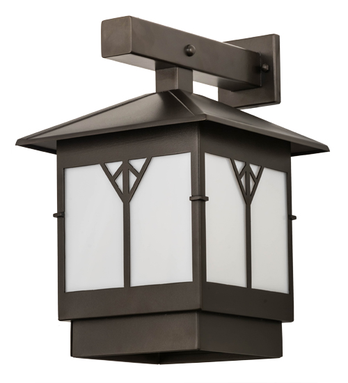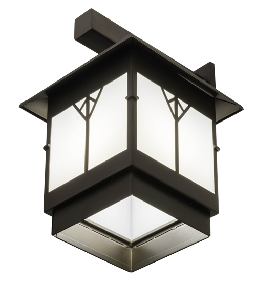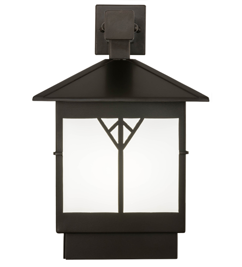 A bold and distinctive design comes to light with hints of Mission styling, perfect illumination and styling for the interiors and exteriors in homes, retailers, restaurants and other commercial settings. Dramatic geometric styling is featured on a Statuario Idalight diffuser which is incorporated into this Bronze powdercoat finished sconce. Beautiful ambient illumination projects from a customer supplied 20 watt, medium base LED A19 lamp. Handcrafted in the USA, this indoor/outdoor fixture is available in custom sizes, styles, colors and dimmable lamping options. UL and cUL listed for dry, damp and wet locations.
