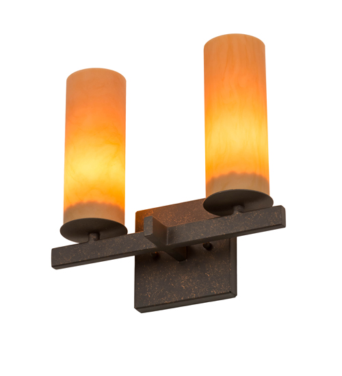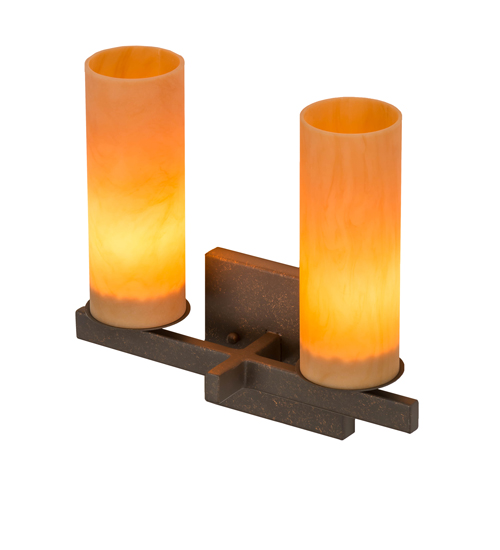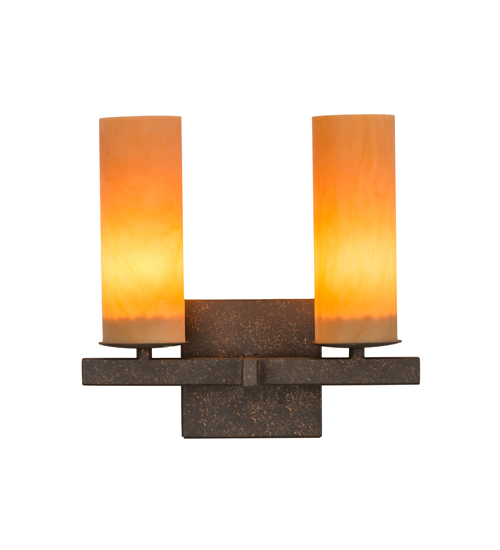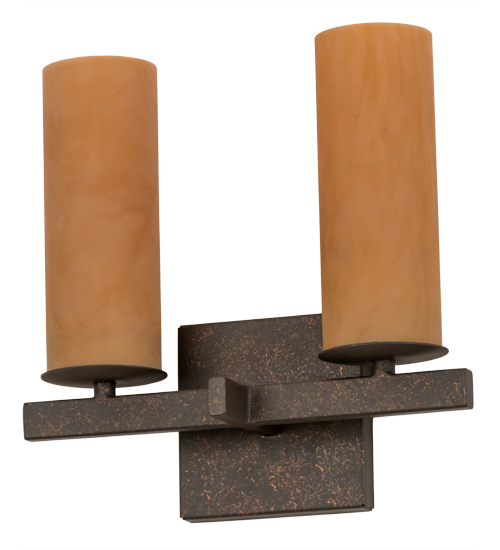 Expert craftsmanship and a distinctive elegance come to light with a luxurious rustic wall sconce that entices all to see. Two Cylindres feature stunning Amber Quartz Idalight which is complemented with a sturdy frame and hardware in a Gilded Tobacco finish. The wall fixture is custom crafted by artisans in the USA in our 180,000 square foot manufacturing facility in Yorkville, New York. Custom styles, designs, colors and dimmable energy efficient lamping options such as LED are available. The fixture is UL and cUL listed for damp and dry locations.