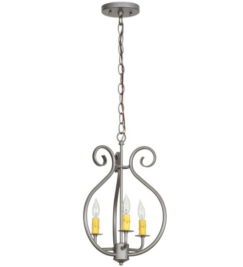 Rich charm and elegance come to light with this Easton pendant. This enchanting fixture features 3 Ivory faux candlelights perched on bobeches, with exquisite Iron Scrollwork in a Blackened Pewter finish. The overall height of this pendant ranges from 20 to 67 inches as the chain length can be easily adjusted in the field to accommodate your specific lighting application needs. Handcrafted by highly skilled artisans in our 180,000 square foot manufacturing facility in Yorkville, New York. Number of lights, metal finishes and fixture size can be customized to your needs. UL and cUL listed for damp and dry locations.