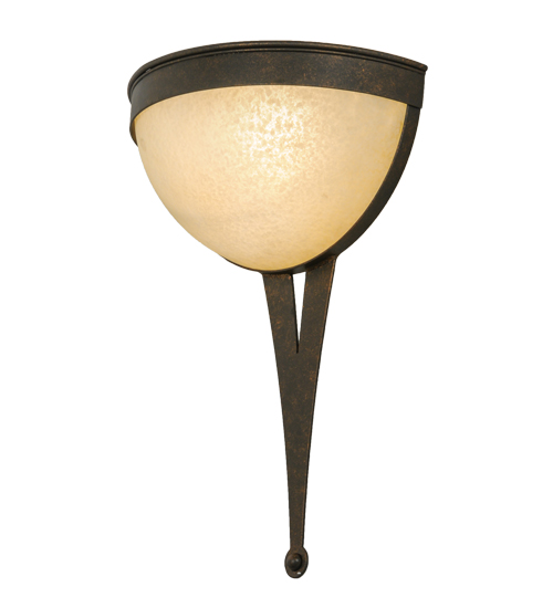 A classic wall sconce that will complement the corridors or rooms of any residential, hotel, or commercial space. Orva features a crescent profile of a Parchment Glass Lens that is enhanced with a Gilded Tobacco finished accents to match the frame and bottom finial. The ADA compliant wall luminaire is handcrafted in the USA and available in custom sizes, designs and finishes. Dimmable energy efficient lamping, including LED, is available. The 18-inch tall fixture is UL and cUL listed for dry and damp locations.