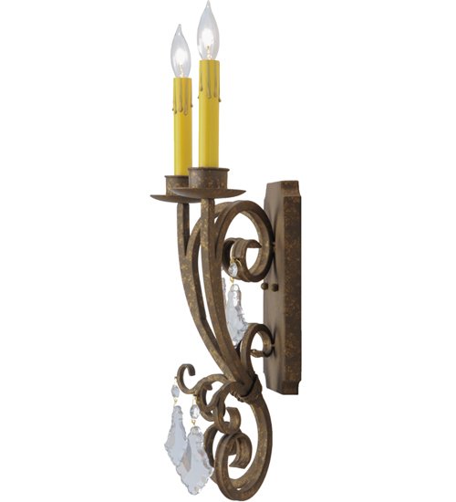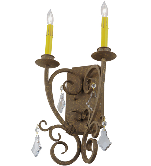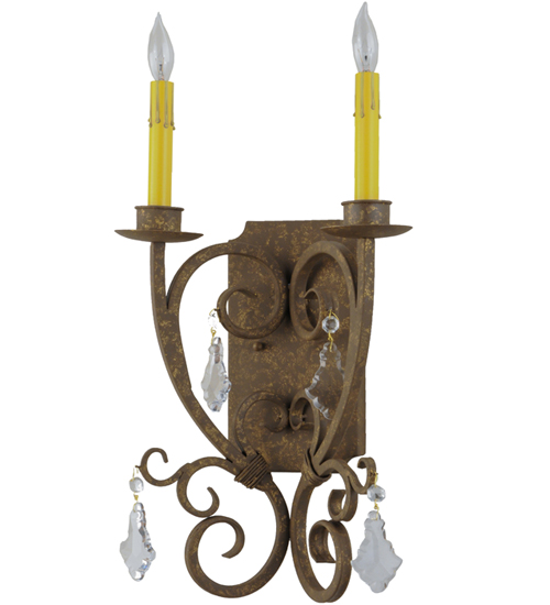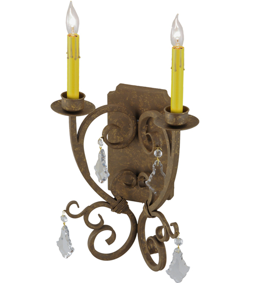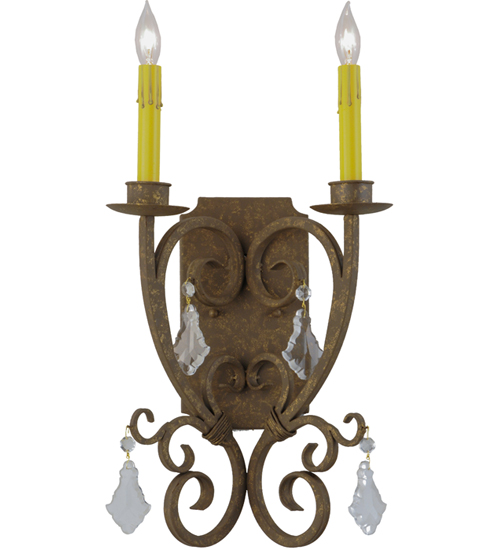 Thierry delivers a graceful elegance resulting in a luxurious design statement. Two Amber faux candlelights are perched on bobeches that are paired with striking Hand-Forged Iron scrollwork featured in a Pompeii Gold finish. The fixture is enhanced with Crystal accents. Custom crafted in our 180,000 square foot manufacturing facility in Yorkville, New York. Candlelight colors, metal finishes and fixture sizes can be customized to your needs. UL and cUL listed for dry and damp locations.