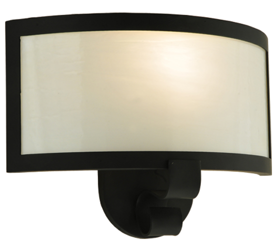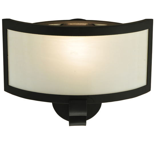 Designed with clean curved profile. This ADA Compliant wall fixture defines a distinctive sophisticated aesthetic. The White Opal glass shade is complemented with a Black finish. Custom crafted by highly skilled artisans in our 180,000 square foot manufacturing facility in Yorkville, New York. Lens colors, metal finishes and fixture sizes can be customized to your needs. UL and cUL listed for dry and damp locations.