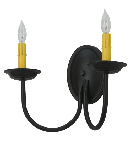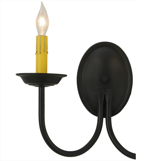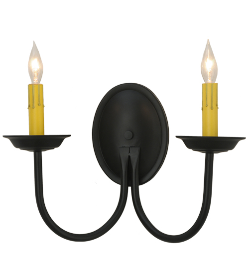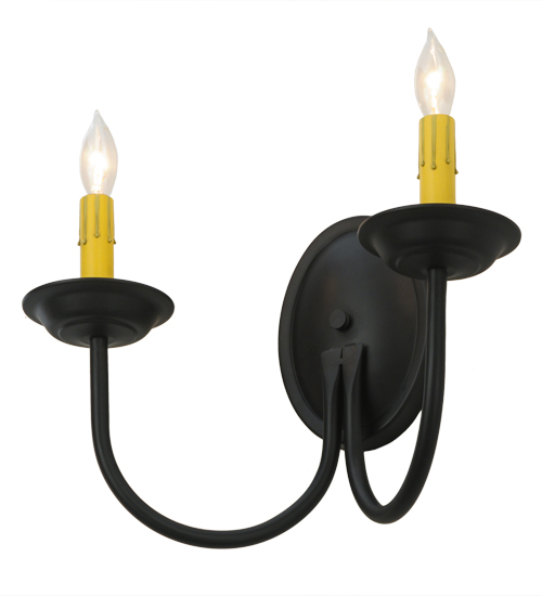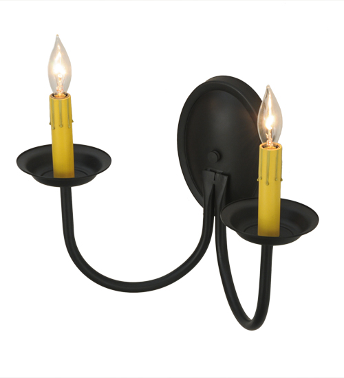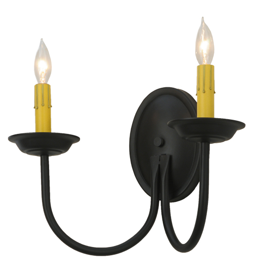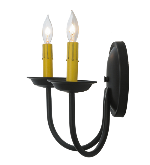 Designed as a sophisticated illuminating accent for any room or corridor. The Classic wall sconce features two Ivory faux candlelights perched on bobeches which are embraced by curved arms. This elegant fixture offers decorative hardware in a Blackwash finish. Custom crafted in our 180,000 square foot manufacturing facility in Yorkville, NY. Candlelight colors, metal finishes and sizes can be customized. UL and cUL listed for dry and damp locations.