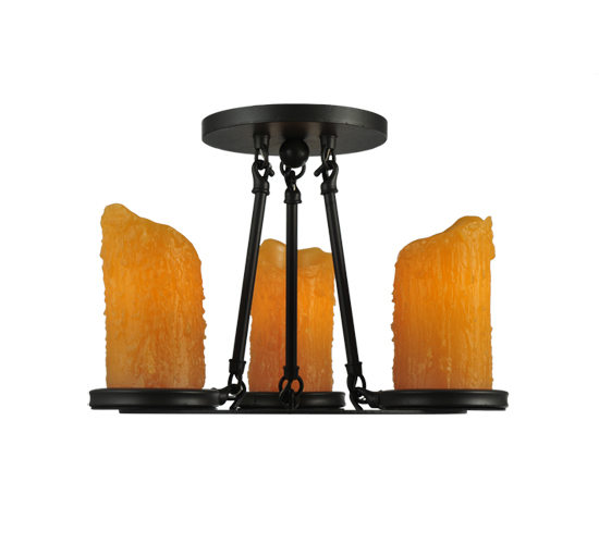 An elegant and stunning look for the King and Queen in your home. Carpathian features 3 Honey Amber faux candlelights. This ceiling fixture features a Wrought Iron finish. Handcrafted by highly skilled artisans in our 180,000 square foot manufacturing facility in Yorkville, New York. Candlelight colors, metal finishes and fixture sizes can be customized to your lighting needs. UL and cUL listed for dry and damp locations.