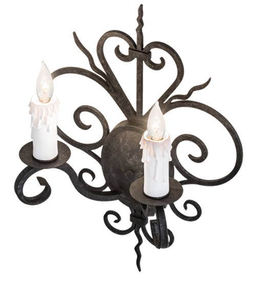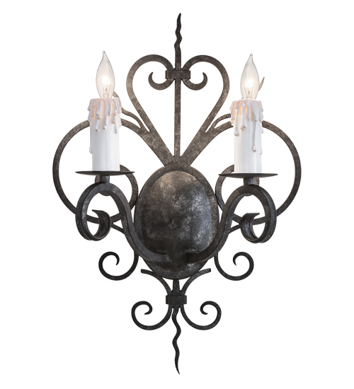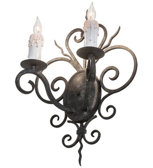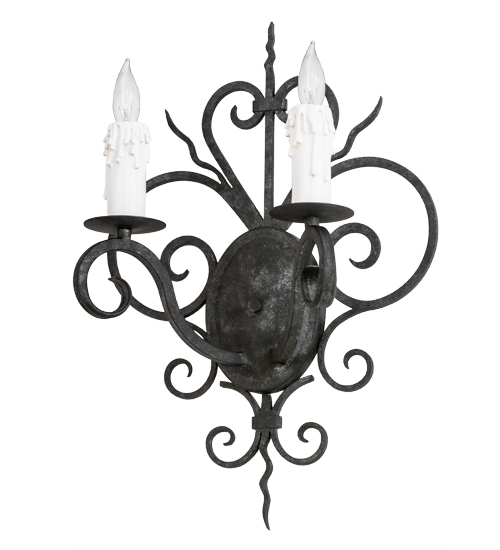 Rich charm and elegance come to light with Kenneth. This wall sconce is designed as a dramatic accent for a hallway, entryway or any other room. This enchanting wall fixture features two White faux candlelights perched on bobeches, with scrolled arms and accents and hardware featured in a Smoke finish. Handcrafted by highly skilled artisans in our 180,000 square foot manufacturing facility in Yorkville, New York. Metal finishes, designs and sizes can be customized to your needs. UL and cUL listed for dry and damp locations.