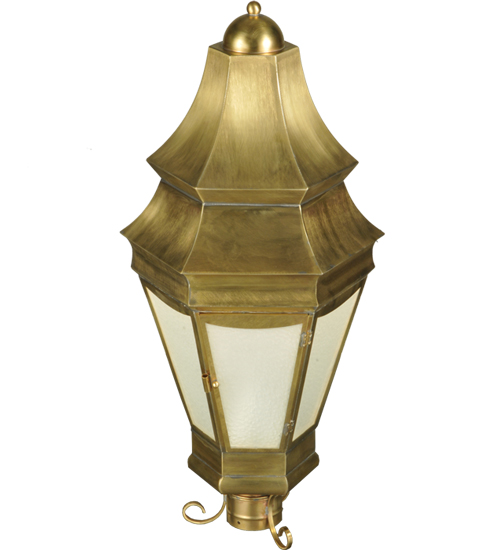 This handsome Georgian style Post Mount Lantern sparkles with Frosted Ripple Glass diffuser panels. This Solid Brass luminaire is enhanced with a Brushed Brass finish and ideal for mounting to posts, columns and other structures. This indoor/outdoor post mount is handcrafted in our 180,000 square foot manufacturing facility in Yorkville, New York. Diffuser styles, metal finishes and fixture sizes can be customized to your needs. UL and cUL listed for dry, damp and wet locations.