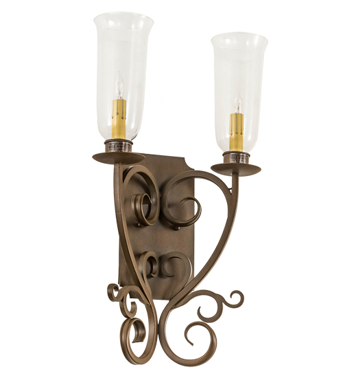 Thierry delivers a graceful elegance resulting in a luxurious design statement. Two exquisite Clear Hurricane Glass Shades are perched on bobeches that are paired with striking scrolled arms and hardware featured in a Rustic Iron finish. Custom crafted in our 180,000 square foot manufacturing facility in Yorkville, NY. Available in custom sizes, finishes, and styles. Dimmable energy efficient lamping options are offered. UL and cUL listed for dry and damp locations.