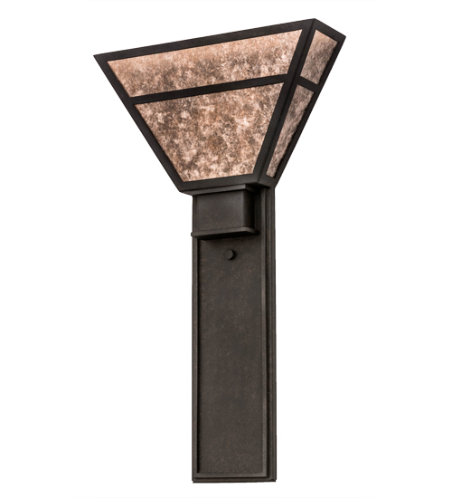 This handsome minimalist design features welcoming ambient light evoked through a Silver Mica diffuser, which is enhanced with a Mission styled straight line design. The diffuser is complemented with decorative accents and hardware that are featured in a warm Chestnut finish. This stunning wall fixture is handcrafted by our artisans in the USA. Custom colors, sizes and styles are available. Energy efficient options such as LED are offered. UL and cUL listed for damp and dry locations.