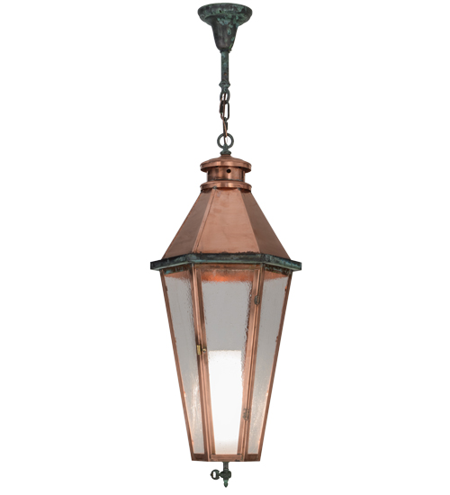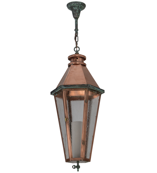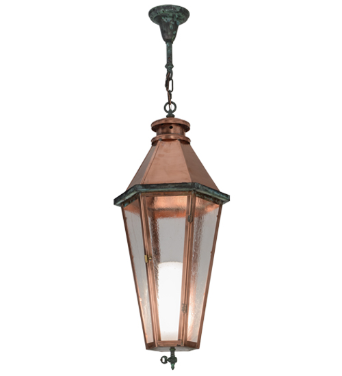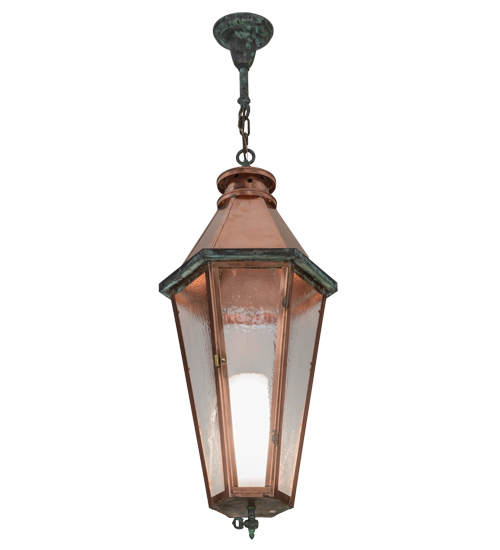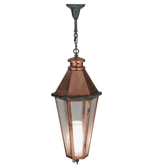 Grand stature and an ornate frame create a sophisticated, luxurious look for Millesime. This ceiling fixture features Clear Seeded glass, which reveals a Statuario Idalight cylindrical diffuser that illuminates from within. The Solid Copper frame, which will age to a nice patina over time, is enhanced with distinctive Verdigris on Brass accents, canopy and chain. Custom crafted in the USA, this fixture is offered in custom sizes, finishes and styles, as well as energy efficient lamping options such as LED. This fixture is UL and cUL listed for dry and damp locations.