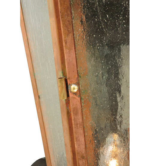 Custom crafted of Solid Copper and Brass in the USA, Millesime reveals a unique, luxurious look for interior and exterior lighting. This high-styled wall fixture features Clear Seeded glass, which is enhanced with Vintage Copper finished hardware and highlighted with Craftsman Verde finished Brass accents. A Statuario Idalight diffuser illuminates the lantern from within. This sconce is offered in custom sizes, finishes and styles, as well as dimmable energy efficient lamping options such as LED. The 14-inch wide fixture is UL and cUL listed for dry, damp and wet locations.