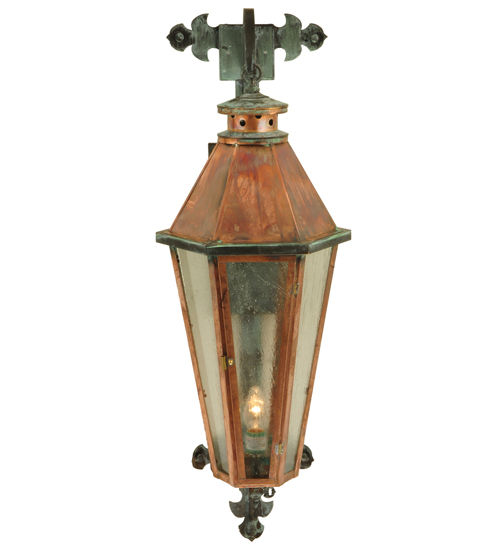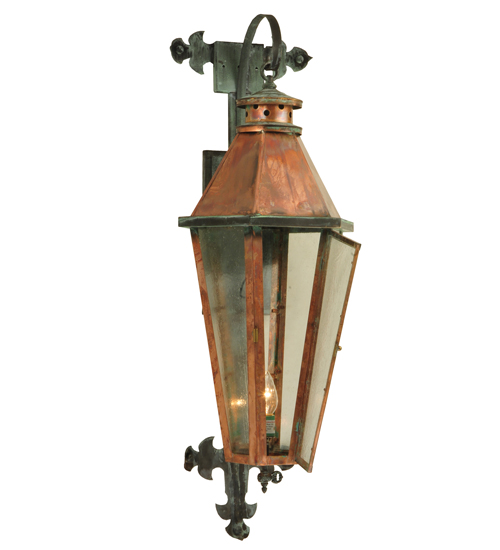 Custom crafted of Solid Copper and Brass in the USA, Millesime reveals a unique, luxurious look for interior and exterior lighting. This high-styled wall fixture features Clear Seeded glass, which is enhanced with Vintage Copper finished hardware and highlighted with Craftsman Verde finished Brass accents.This Millesime sconce is offered in custom sizes, finishes and styles, as well as dimmable energy efficient lamping options such as LED. The 14-inch wide fixture is UL and cUL listed for dry, damp and wet locations.
