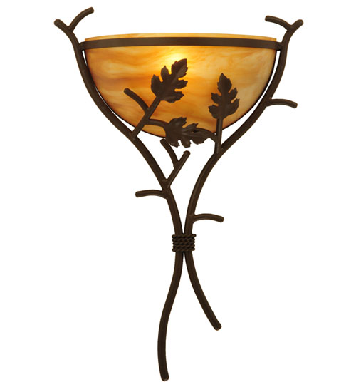 Invite the exquisite natural beauty of the majestic Oak Tree with this uniquely styled wall sconce which is adorned with graceful Hand-forged Iron Oak Branches and leaves. Cafe Noir finished accents and frame are highlighted with a stunning Ambra Siena Idalight diffuser. Handcrafted in our 180,000 square foot manufacturing facility in Yorkville New York, this fixture is available in custom designs, colors and sizes. Dimmable energy efficient lamping options such as LED are offered. UL and cUL listed for dry and damp locations.