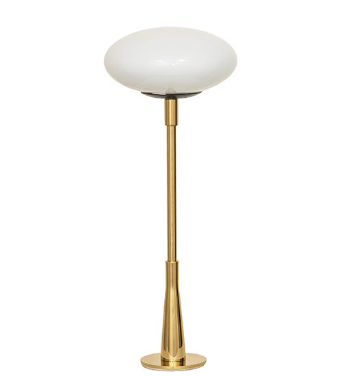 An extraordinary lighting element, Margo features an oval, egg-shaped profile that is embraced by a Matte Black bobeche-styled holder supported by a Polished Brass bar top lamp base. This sleek Brass fixture utilizes Integral LEDs for beautiful ambient lighting applications on bar tops or reading tables in restaurants and lounges from Atlantic City, New Jersey, to Reno, Nevada. The Margo Bar Top Lamp is included in our American-designed, handcrafted Art Deco Lighting Collection. UL and cUL listed for dry locations. Custom Made. Call for Pricing and Lead Time. Designed by David Singer of Arc Light Design in New York and Featured at the Wolfgang Puck Bar & Grill at the MGM Grand Hotel & Casino in Las Vegas.