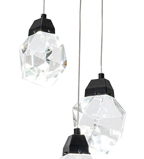 Shining like diamonds in the sky… This vibrant, modern pendant is designed with faceted Clear Crystal diffusers that illuminate brilliantly. This unique fixture features five orb-like shades attached to arms embraced by a central hub with Flat Black finished hardware. This fixture shines with energy-efficient Integral LEDs. It includes aircraft cables ranging from 9 to 84 inches that can be adjusted on location above a staircase or in an entryway in residential, hospitality, and other commercial settings. The Benning Cascading Pendant is included in our American-designed, handcrafted Crystal Lighting Collection. This fixture is UL and cUL listed for dry and damp locations. Custom Made. Call for Pricing and Lead Time.