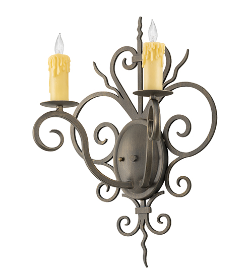 Rich charm and elegance come to light with this Kenneth wall sconce. This fixture is designed as a dramatic illuminated accent for a corridor, lobby, or any other room where you want to make a design statement. This enchanting luminaire features 2 Ivory faux candlelights perched on bobeches. Hand-Forged Iron scrolled arms and accents are featured in Antique Brass, a premium hand-applied finish. The Kenneth Wall Sconce is included in our American-made, American-designed, handcrafted Traditional Lighting Collection and manufactured in Yorkville, New York. UL and cUL listed for dry and damp locations.