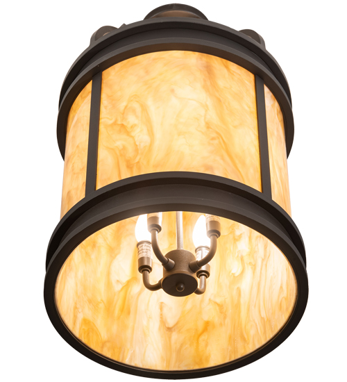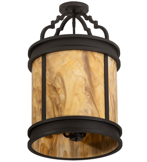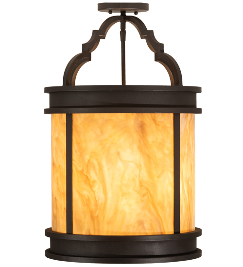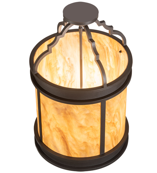 A strikingly handsome yet elegant ceiling fixture design complemented with the luster of appealing metal hardware. Stunning Travertine Idalight diffuses beautiful ambient light through this lantern which is complemented with a frame, decorative accents and hardware featured in a Wrought Iron finish. Handcrafted by highly skilled artisans in our 180,000 square manufacturing facility in Yorkville, New York. Candlelight colors, metal finishes and fixtures sizes can be customized to meet your needs. UL and cUL listed for damp and dry locations.