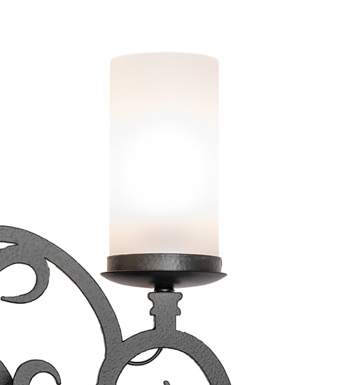 Exquisite Iron Scrollwork featured in a Costello Black finish is the focus of this elegant wall sconce. The complementary frame and hardware which include Gothic and Fleur-de-lis accents are enhanced with 3 Ivory Cylindres that provide beautiful ambient illumination. Handcrafted by highly skilled artisans in our 180,000 square foot manufacturing facility in Yorkville, New York. Custom colors, styles, and sizes available. Dimmable energy efficient lamping options offered. UL and cUL listed for dry and damp locations.