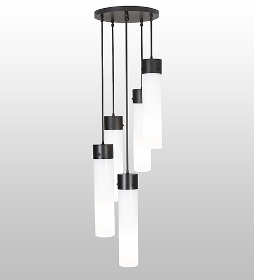 Creating a dramatic design statement with five Cylindres displayed at various heights. This stunning pendant defines a distinctive sophisticated aesthetic. The Statuario Idalight diffusers are embraced with hardware featured in a bold Solar Black finish. Handcrafted by highly skilled artisans in our 180,000 square foot manufacturing facility in Yorkville, NY. Custom sizes, finishes and diffuser colors available. UL and cUL listed for dry and damp locations.