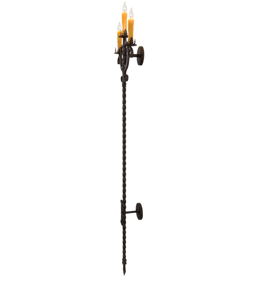 Enjoy the rich, classic styling and distinctive sophisticated look of Palmira. A candelabra of three Honey Amber faux candlelights is perched atop of three custom tailored bobeches with a scrolled frame. The fixture also features a long steel stem with a braided look and embellished with a accent for aesthetic appeal. Stunning Solid hardware is hand forged and hand finished in a Coffee Bean hue. The fixture is custom crafted in our 180,000 square foot manufacturing facility in Yorkville, New York. Custom sizes, designs and finishes available. UL and cUL listed for dry and damp locations.