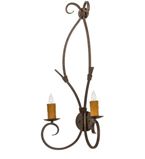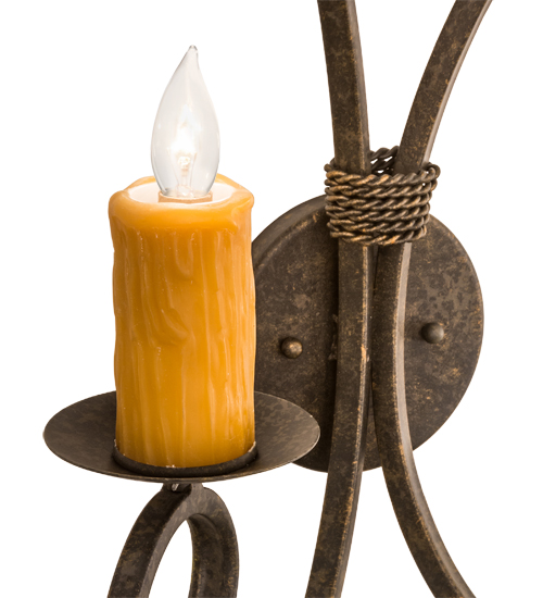 Designed as an elegant lighting design for a wall in any room, this Sienna sconce features 2 Amber faux candlelights that are perched on bobeches with Hand-Forged Iron Scrollwork. This lovely fixture features a Golden Bronze finish. Quality hand detailed American craftsmanship is perfected by years of time honored artistry, passed down from generations of highly skilled artisans. The wall fixture is handcrafted by talented artisans in our 180,000 square foot manufacturing facility in Yorkville, New York. The number of candlelights, metal finishes and sizes can be customized to meet your needs. UL and cUL listed for damp and dry locations.