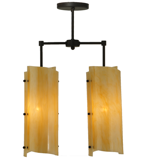 This stunning pendant design is created with 2 Sahara Taupe Idalight shades which are hand-curved and wrapped around hardware with graceful allure. This exquisite ceiling luminaire delivers beautiful ambient illumination for a wide range of decorative lighting applications in residential and commercial settings. The Hand-forged Iron frame and hardware are featured in a Coffee Bean finish. Handcrafted by skilled artisans in the company’s manufacturing facility in Upstate New York, this elegant fixture is offered in custom sizes, styles and colors, as well as dimmable energy efficient lamping options such as LED. The Vortex pendant is UL and cUL listed for dry and damp locations.