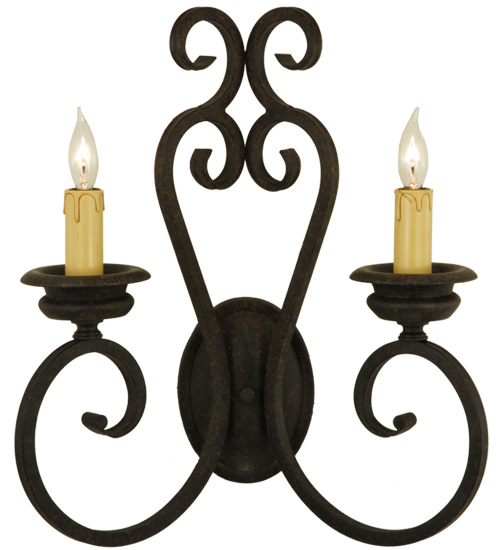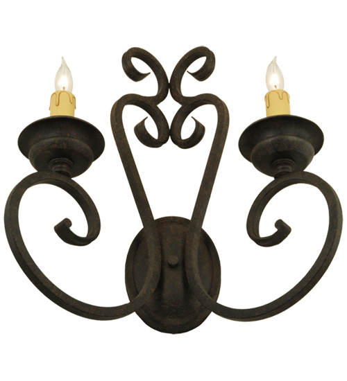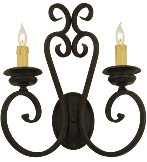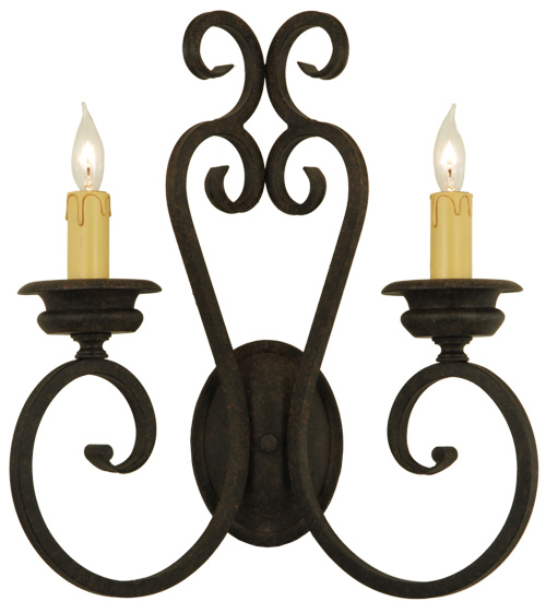 Beauty and grace come to light with this elegant wall sconce. The luminaire is highlighted with an exquisite Hand-Forged Iron scrollwork design. 2 Ivory faux candlelights are perched on distinctive bobeches featured in a Coffee Bean finish. Perfect to illuminate fine homes, hotels, restaurants and other residential, hospitality and commercial spaces. This classic lighting fixture complements any interior design. Handcrafted by highly skilled artisans in our 180,000 square foot manufacturing facility in Yorkville, New York. Candelight colors, metal finishes and fixture size can be customized to meet your needs. UL and cUL listed for damp and dry locations.